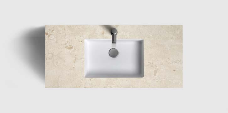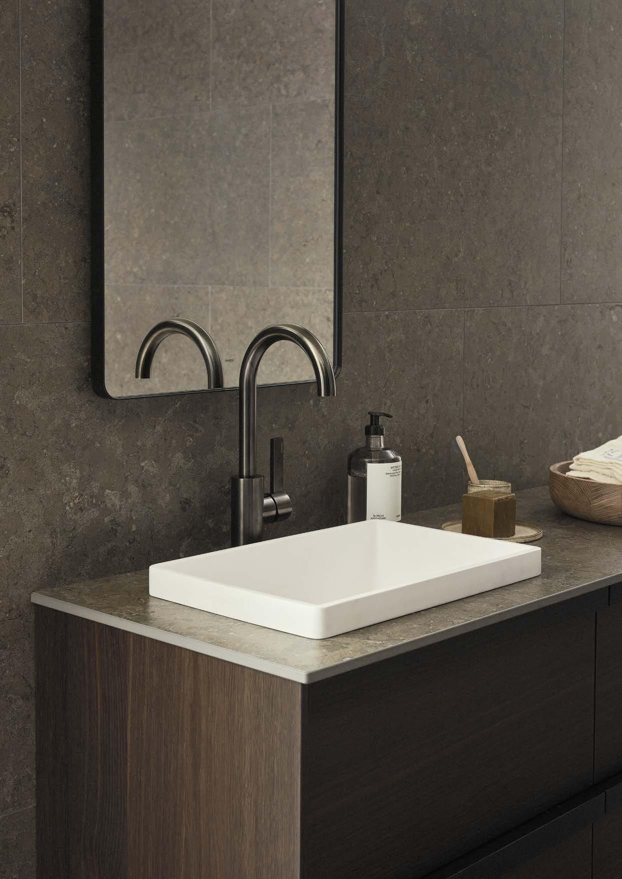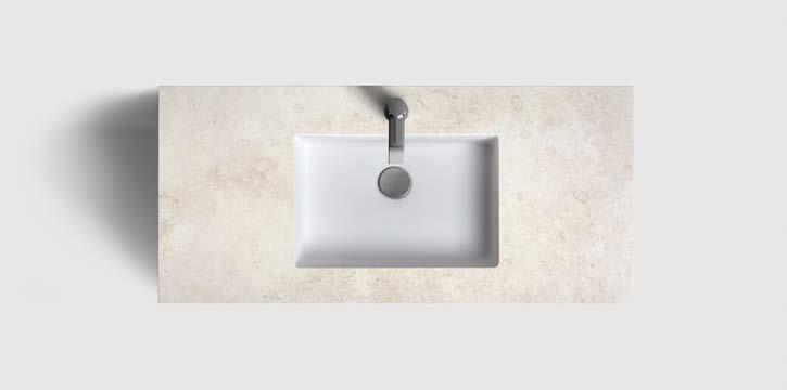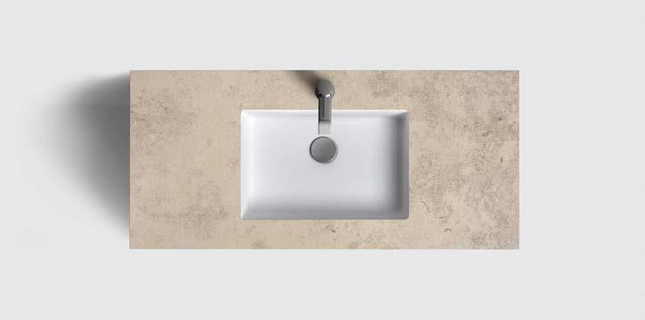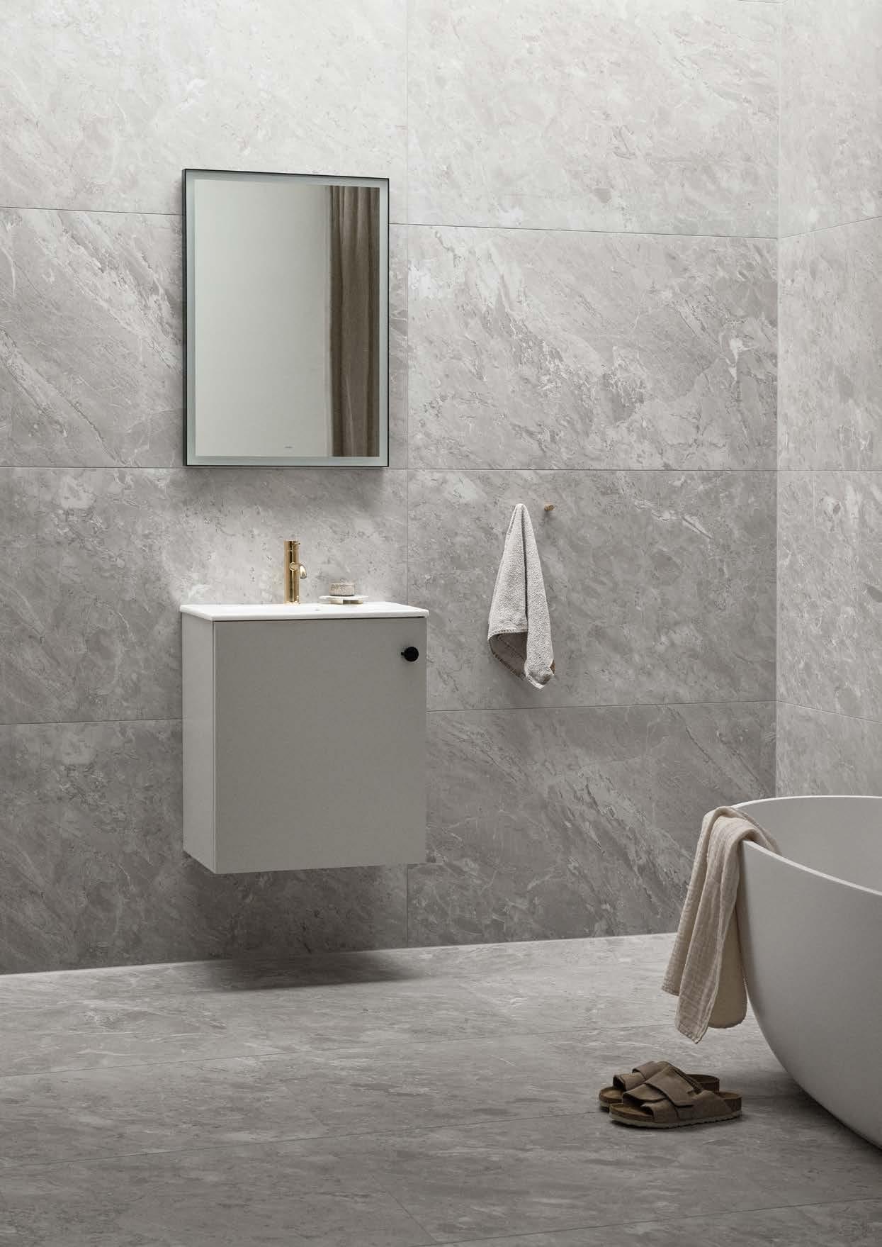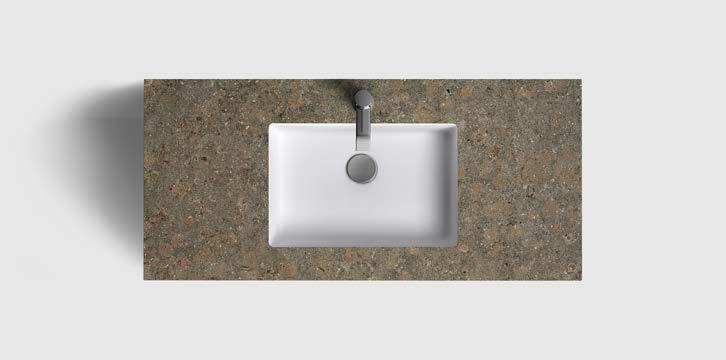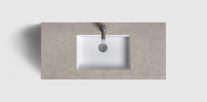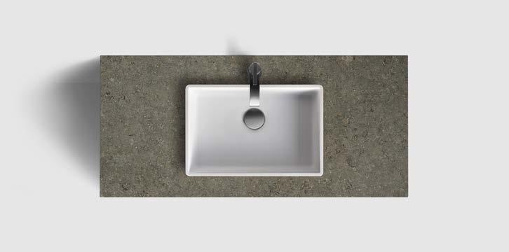 AZUL GREY HONED⁄UNDERMOUNTED PORCELAIN WHITE, 420X270 MM RUNÖ WARM GREY BRUSHED⁄UNDERMOUNTED PORCELAIN WHITE, 420X270 MM