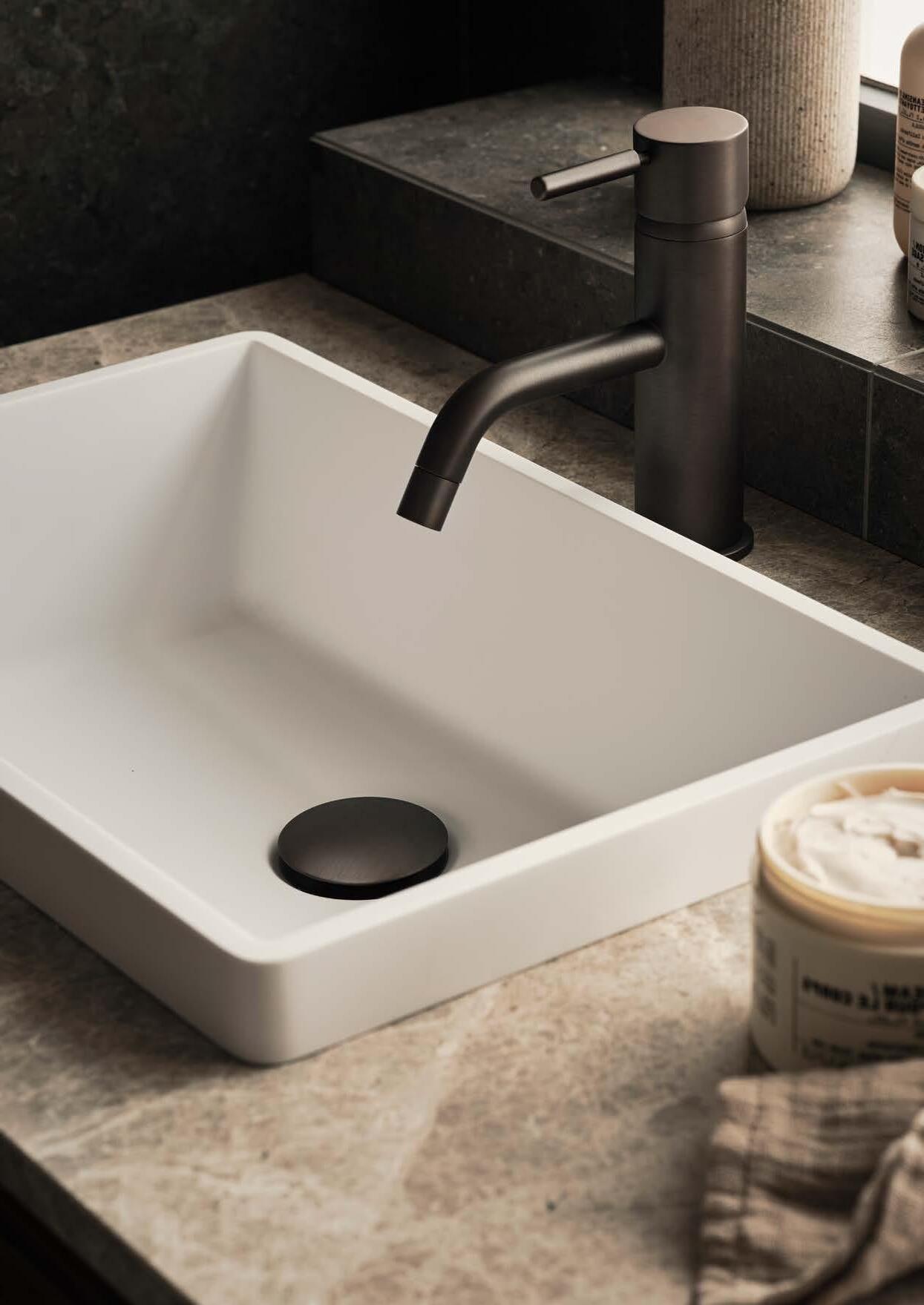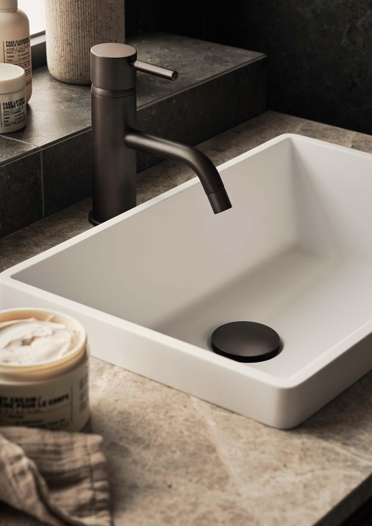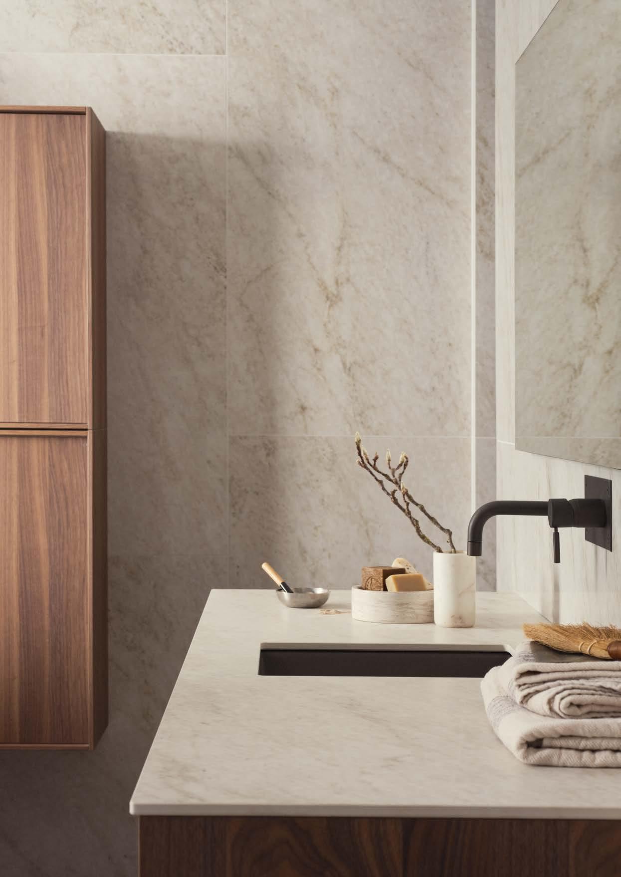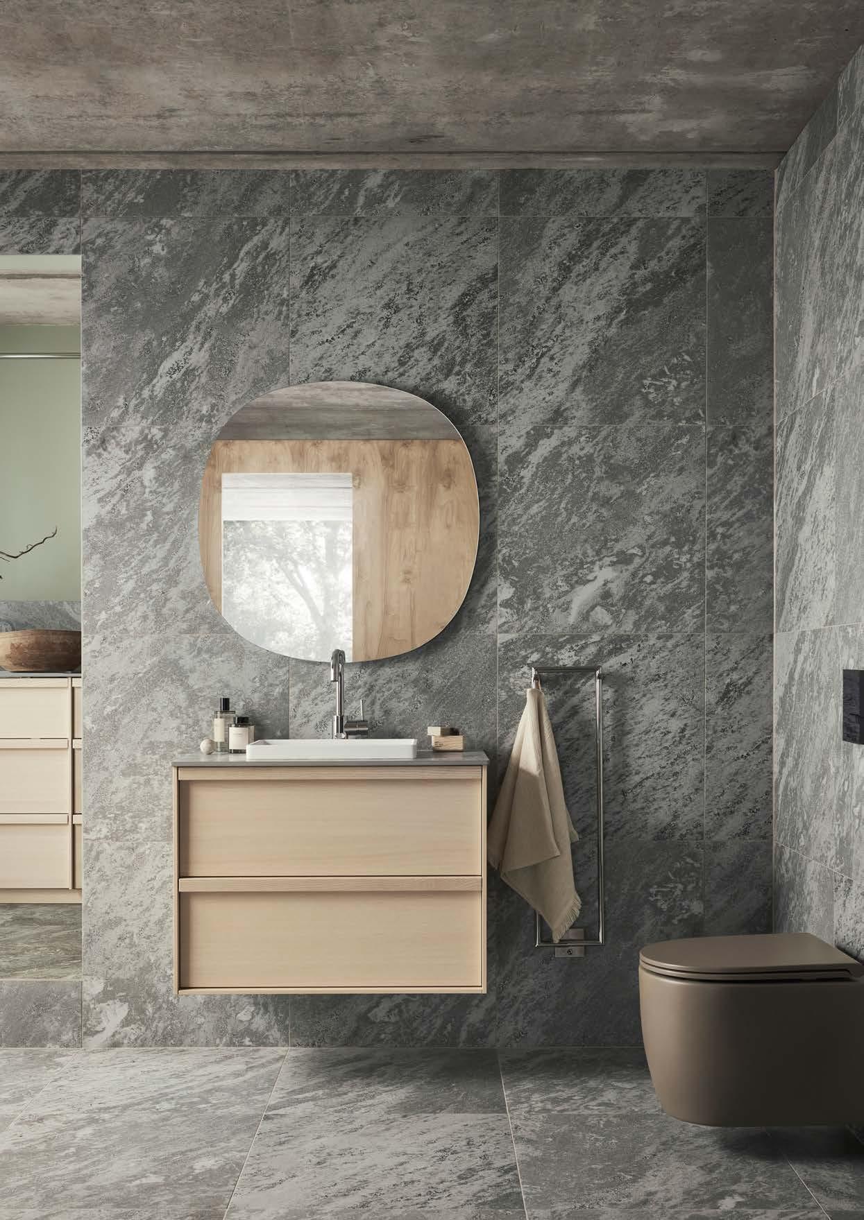 AZUL GREY HONED⁄UNDERMOUNTED PORCELAIN WHITE, 420X270 MM RUNÖ WARM GREY BRUSHED⁄UNDERMOUNTED PORCELAIN WHITE, 420X270 MM