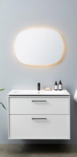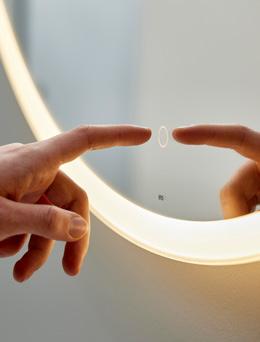 Ifö har ett brett utbud av speglar och spegelskåp med LED-belysning. Vissa styrs via en praktisk touchsensor.