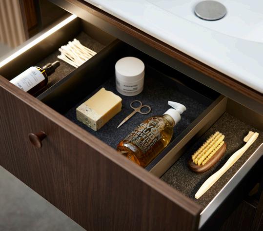 LED-belysning och mjukstängning Med mjukstängning stängs dina skåp och lådor mjukt och tyst. LED-belysning finns som tillbehör och tänds automatiskt när du öppnar lådan.