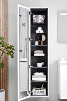 • Alla sidoskåp har mjukstängande dörrar, justerbara hyllor, pushto-open och dörrar som kan monteras antingen till höger eller vänster för att passa dig och ditt badrum.