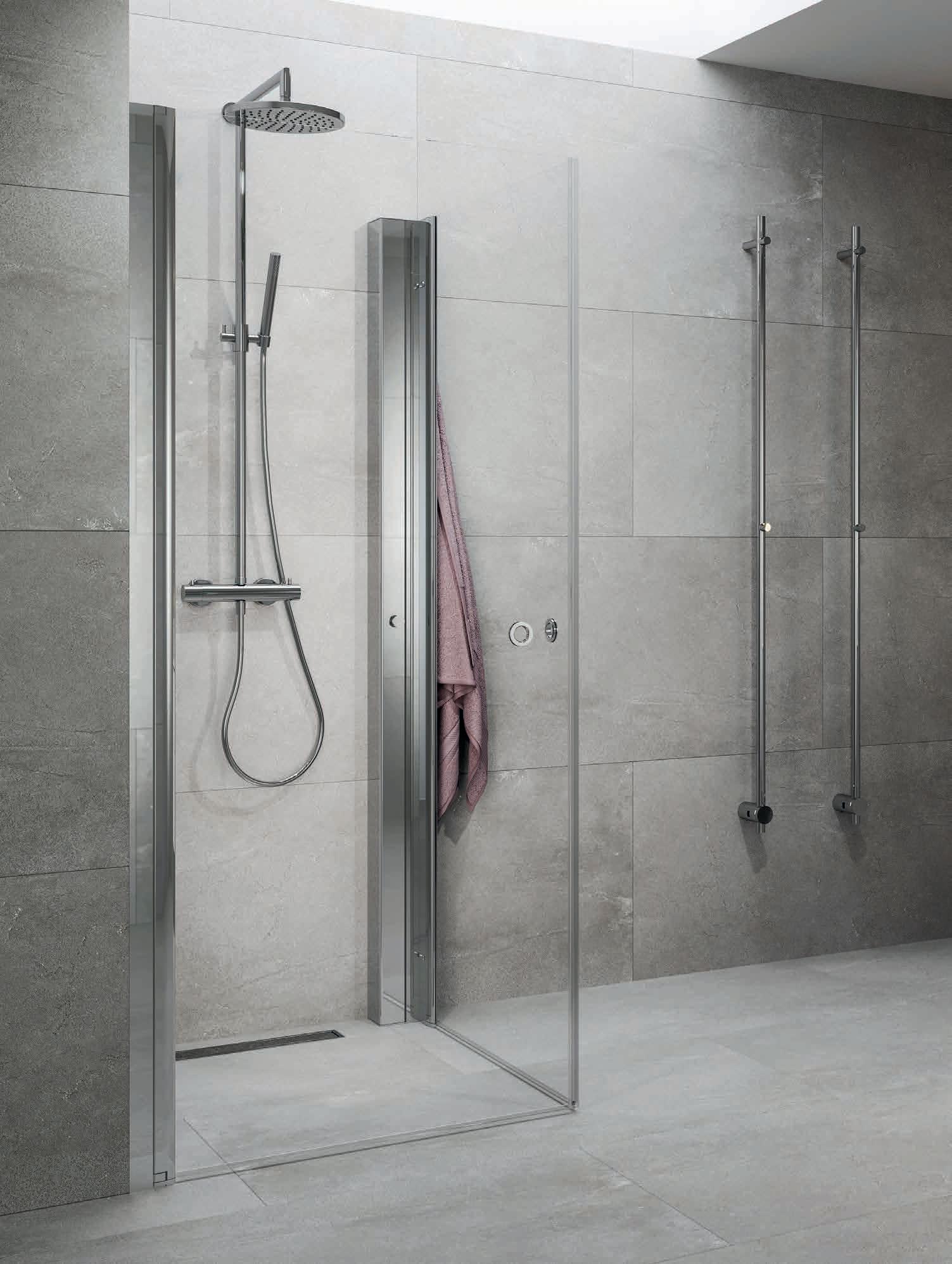 Spirit är vår mest mångsidiga duschserie med rena linjer, stora glasytor och ett harmoniskt designspråk. Oavsett om du har ett stort eller litet badrum finns det en Spirit för alla tack vare möjligheten att måttanpassa denna duschserie.