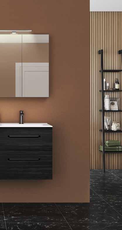 Sort eik gir rommet et sofistikert uttrykk som kan kombineres med mange farger. Med dobbel servant er det god plass til flere, og du får en effektiv og harmonisk start og avslutning på dagen. Våre speilskap gir plass til mer på badet, og har dobbeltsidige speildører med myktlukkende hengsler, stikkontakt med bryter og toppmontert energisparende LED-lampe.
