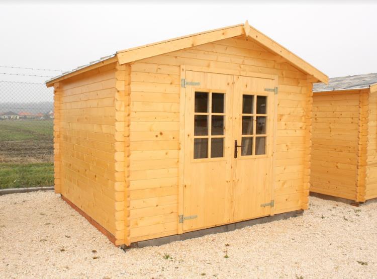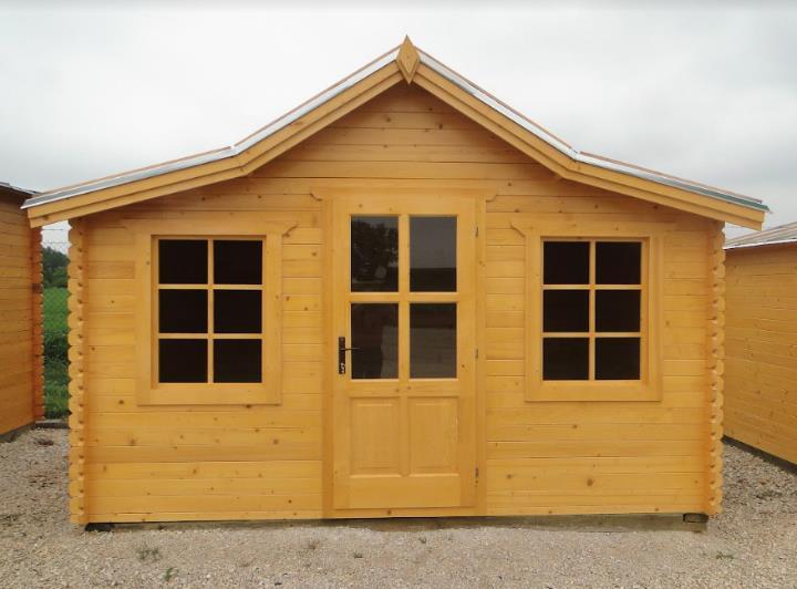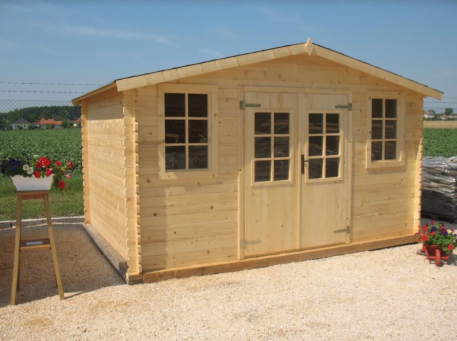 Teraszos két ablakos egy ajtós rönk jellegű kerti faház