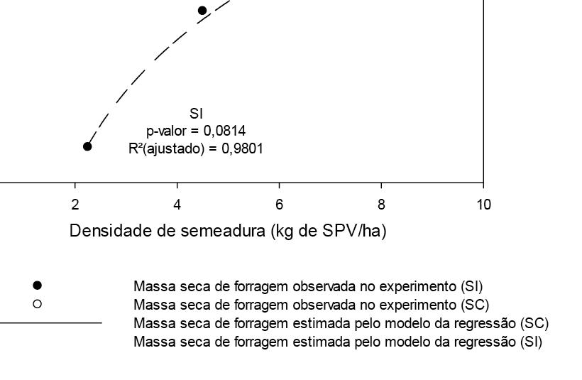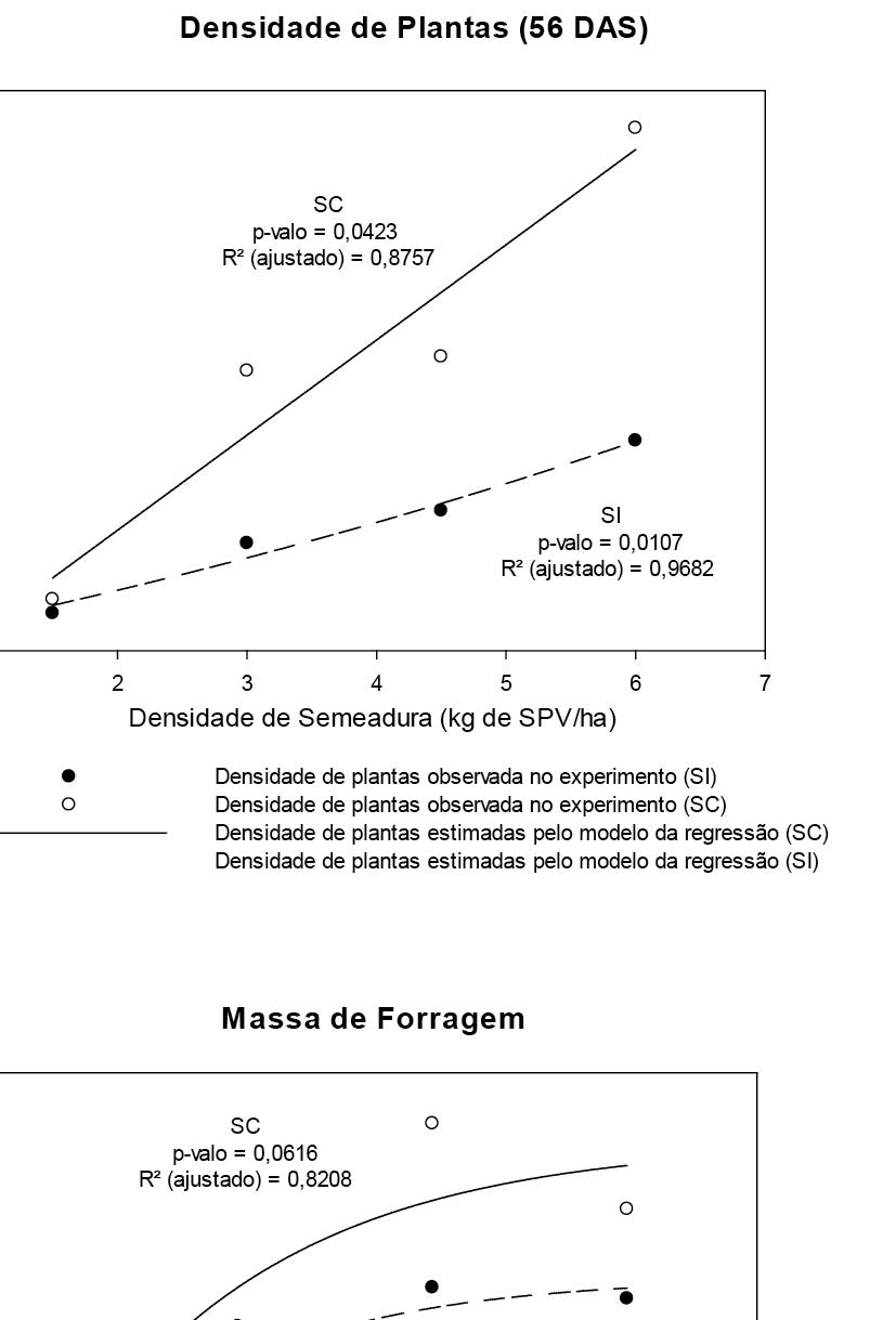 trilhagem, mensuração de umidade (três vezes) e pesagem da massa fresca dos grãos (kg). Os dados foram ajustados para 14% de umidade dos grãos e a estimativa de produtividade corrigida em função do número de plantas colhidas e população estimada (plantas ha-1), e apresentados em sacas de 60 kg por hectare (sc ha-1).