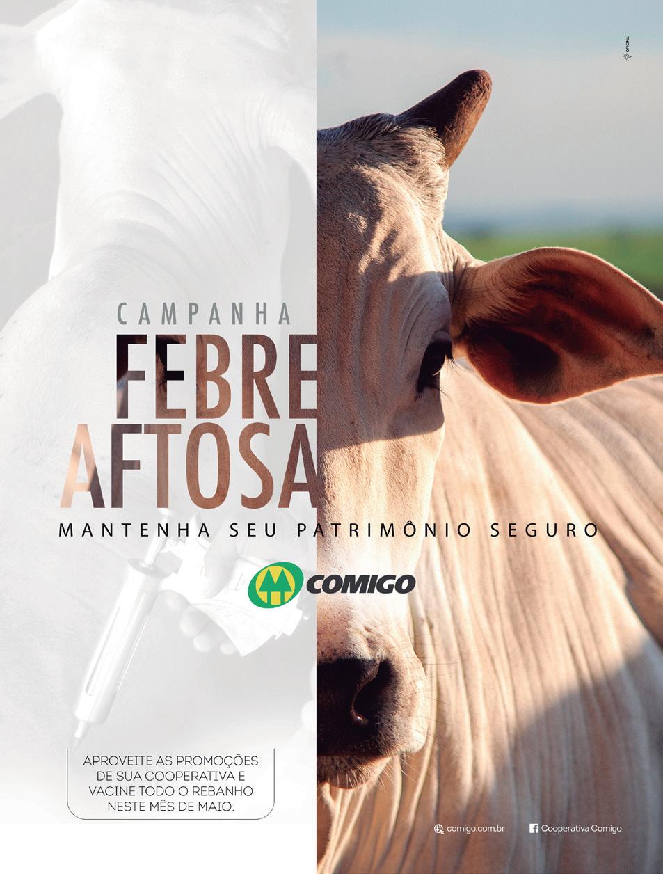 Nos meses de vacinação (maio e novembro), todos os cooperados criadores de bovinos ou bubalinos devem procurar uma loja da COMIGO e adquirir a vacina contra febre aftosa. Lembrando que, de acordo com o Ministério da Agricultura, Pecuária e Abastecimento (Mapa), a partir de maio de 2019 a dose da vacina passará de 5 ml para 2 ml. A expectativa é de que com a redução da dosagem, ocorram menos reações nos animais, como os abcessos e inchaços. Além disso, com frascos menores, as vacinas ocuparão menor espaço, facilitando o transporte e reduzindo o custo de refrigeração.