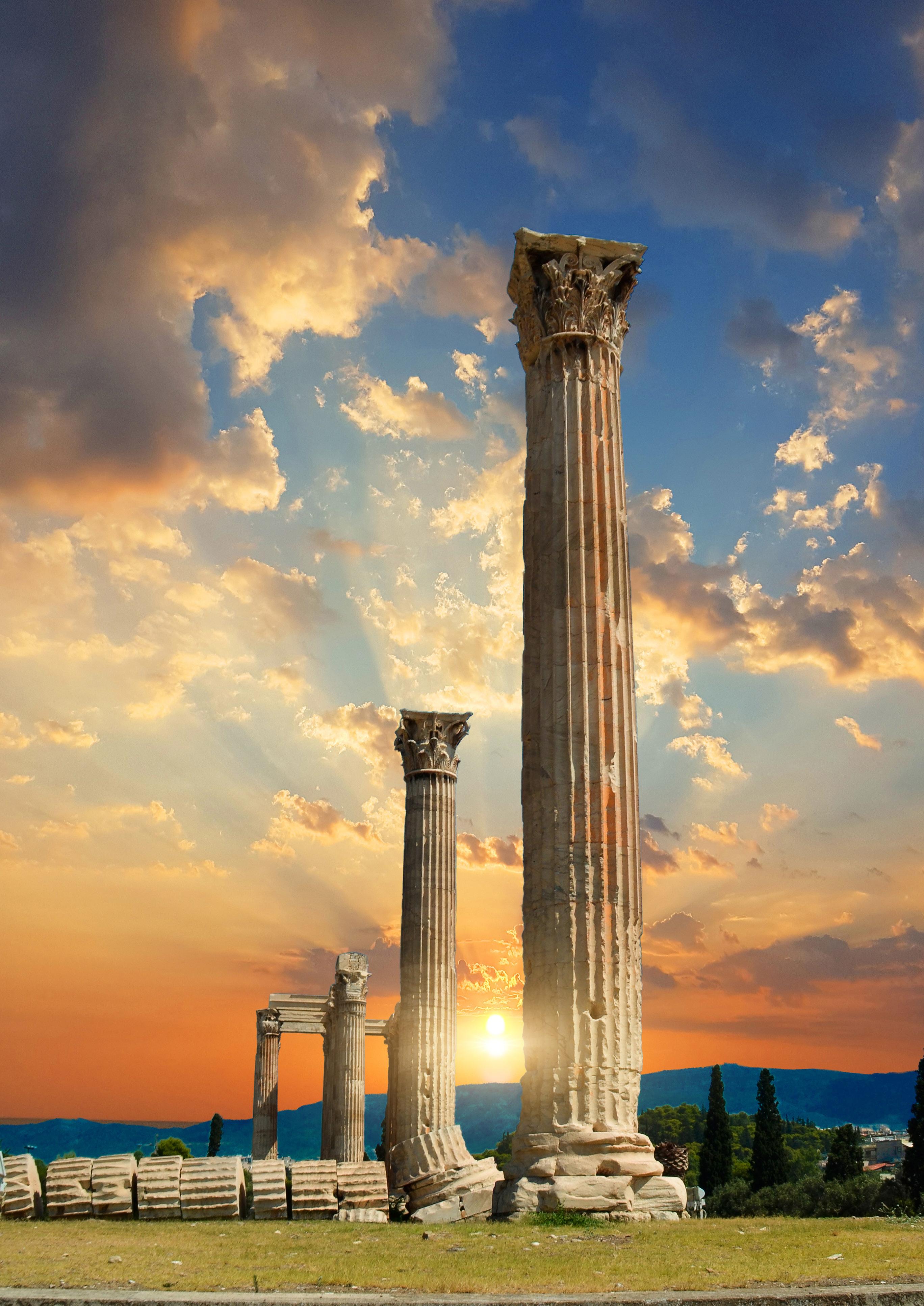 DERNIÈRE DE COUVERTURE COLONNES DU TEMPLE OLYMPIÉION (TEMPLE DE ZEUS OLYMPIEN), À ATHÈNES (GRÈCE). CONSTRUIT À PARTIR DU 6ÈME SIÈCLE AVANT J-C. SITUÉ AU PIED DE L’ACROPOLE.