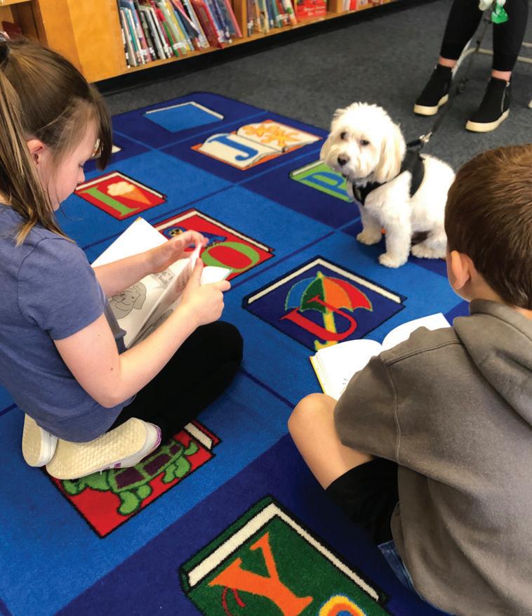 In photo, Wood Park students read to Coby, a Havanese. Librarian Karen Russo said, “There’s a saying that ‘a teacher takes a hand, opens a mind, and touches a heart.’ The Little Shelter program does that and more, bringing smiles to the faces of young children who strive to enjoy reading. Through the unconditional love of a dog, they can do just that!”