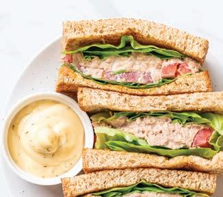 tuna salad, egg salad, bagels, rolls, cream cheese & cheese, tomatoes, cucumbers, red onions, sour cream coffee cake, fresh fruit