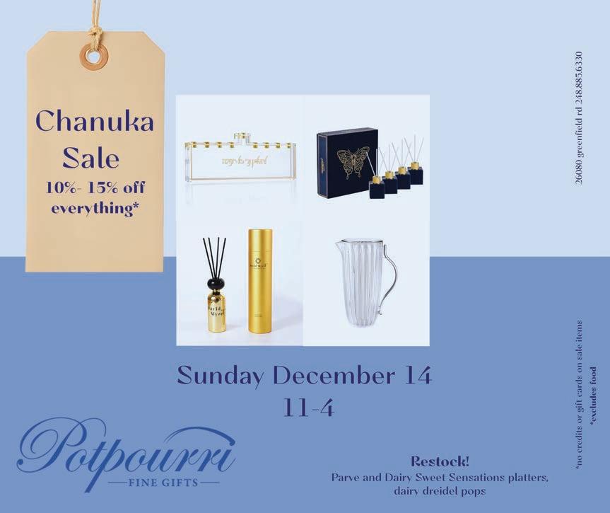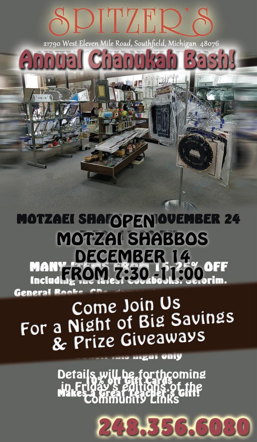 Spitzer’s will have daily specials throughout the week of Chanukah!! See store for details