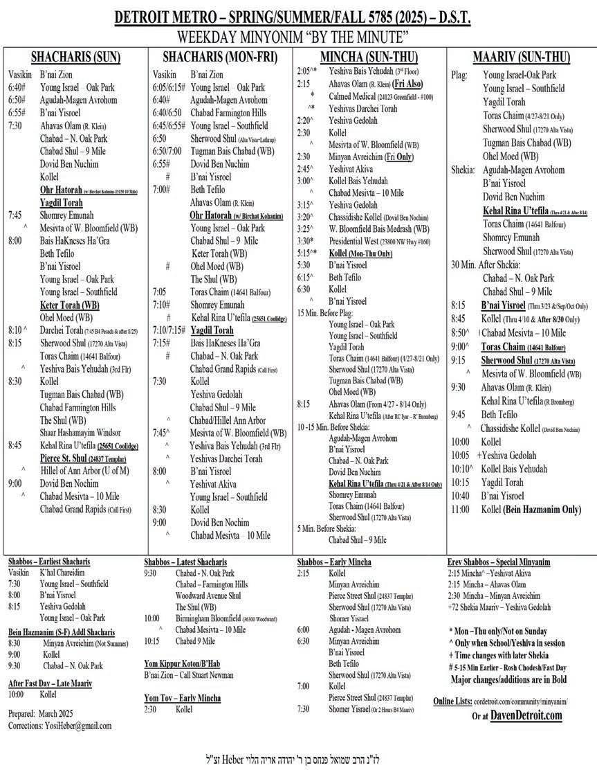 W ednesday 9:20 AM Rabbi Menachem Ostroff 14641 Balfour, Oak Park Shlomo Hamelech