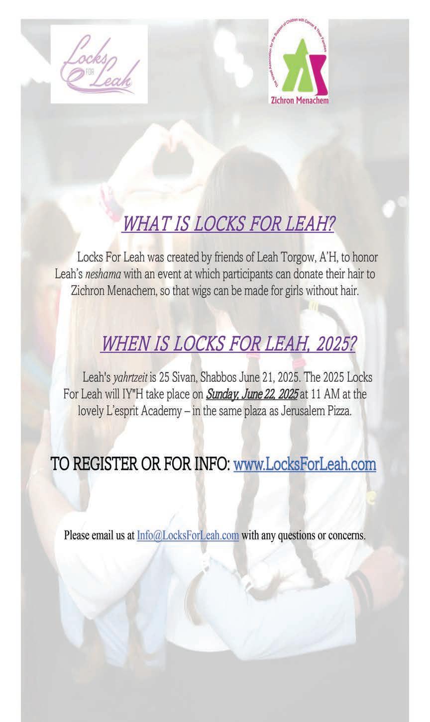 SCHABES· KAYLA FREEDMAN · LEAH COHEN· LEAH STERNHEIM · LEEBA FELDMAN· LEEBA KUNTSLINGER · LEEBA LOVER· LIBA SINGERMAN · MALKIE FREY· MALYA LOKETCH · MAMTZY SCHEINER· MEIRA KOTT · MEIRA VERZUB· MINDY ROTH · MIRIAM KLEINMAN· NAAVA MULLER · RACHELLI DAVIS· RIKKI