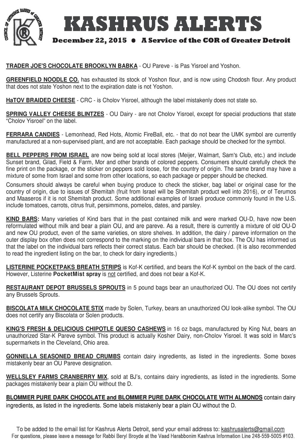 Rabbi Beryl Broyde Kashruth Product Helpline 248-559-5005 x103 cor@cordetroit.com www.cordetroit.com