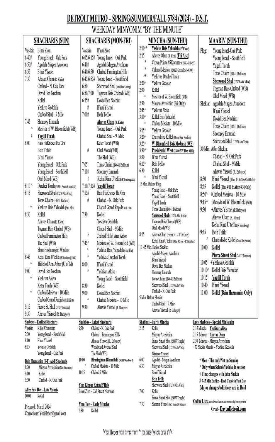 SPITZER'S ESROGIM CENTER SCHEDULE FOR 5785