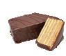Layers of yellow chiffon and chocolate filling enrobed in a chocolate ganache