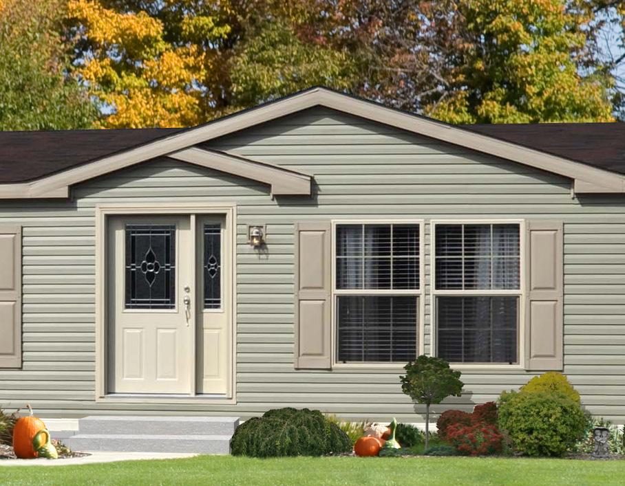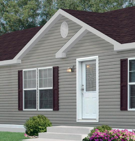 Sandstone Package - Includes: Vinyl Windows with Low-E Glass & Grids, Steel Front Door with Pembrook Leaded Glass & Deadbolt Lock, Steel 9-Lite Rear Door, with Deadbolt Lock, Coordinating Facia, Soffits & Exterior Lights