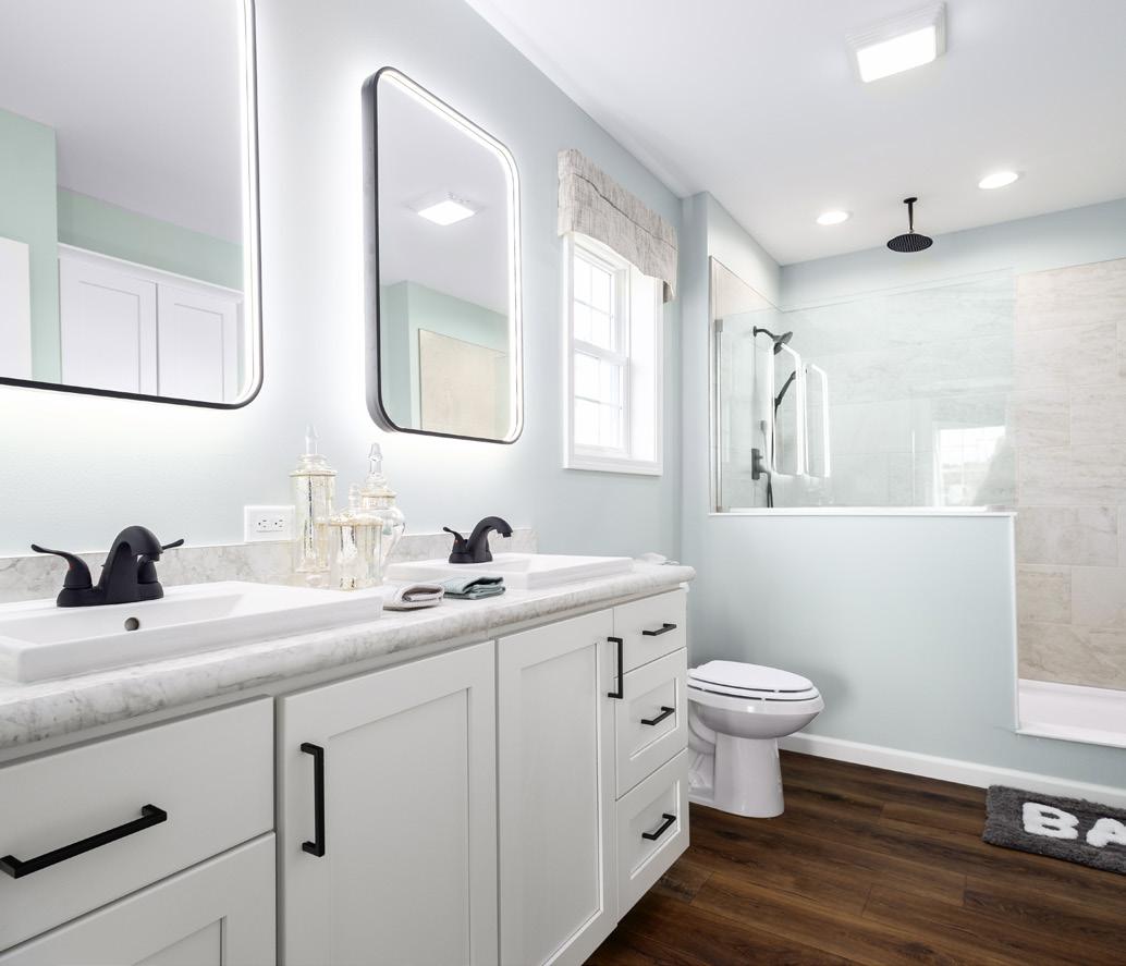 • Drywall Soffits w/ LED Flush Mount Lights in Bathroom