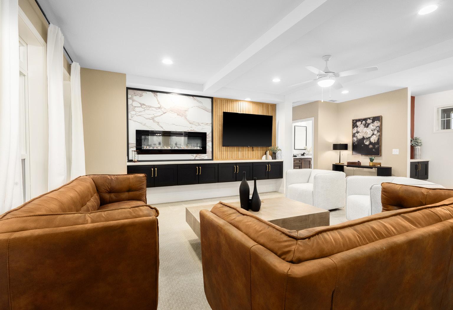 • LED Fireplace w/ Ceramic Tile and Shiplap Entertainment Center