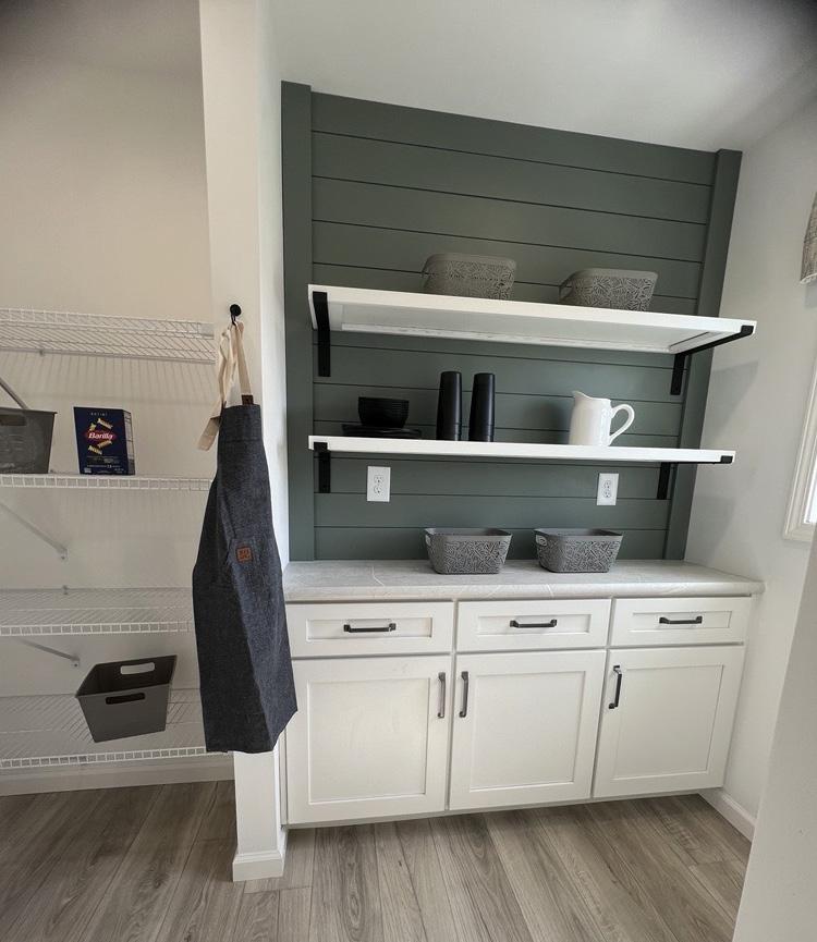 • 3/4” Adjustable Shelves with Finished Edges in Overhead Kitchen Cabinets