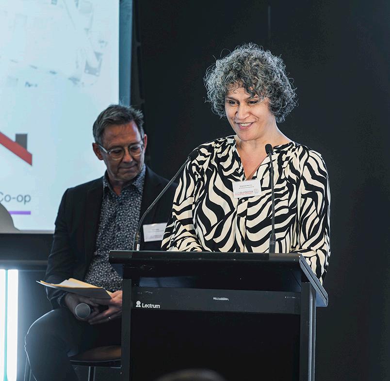 Melina Morrison, CEO of the Business Council of Co-operatives and Mutuals, introduced the day’s closing speaker, Melbourne’s Deputy Mayor Roshena Campbell. Ms Campbell wrapped up the Summit with a powerful call to reimagine a new housing future for the city.