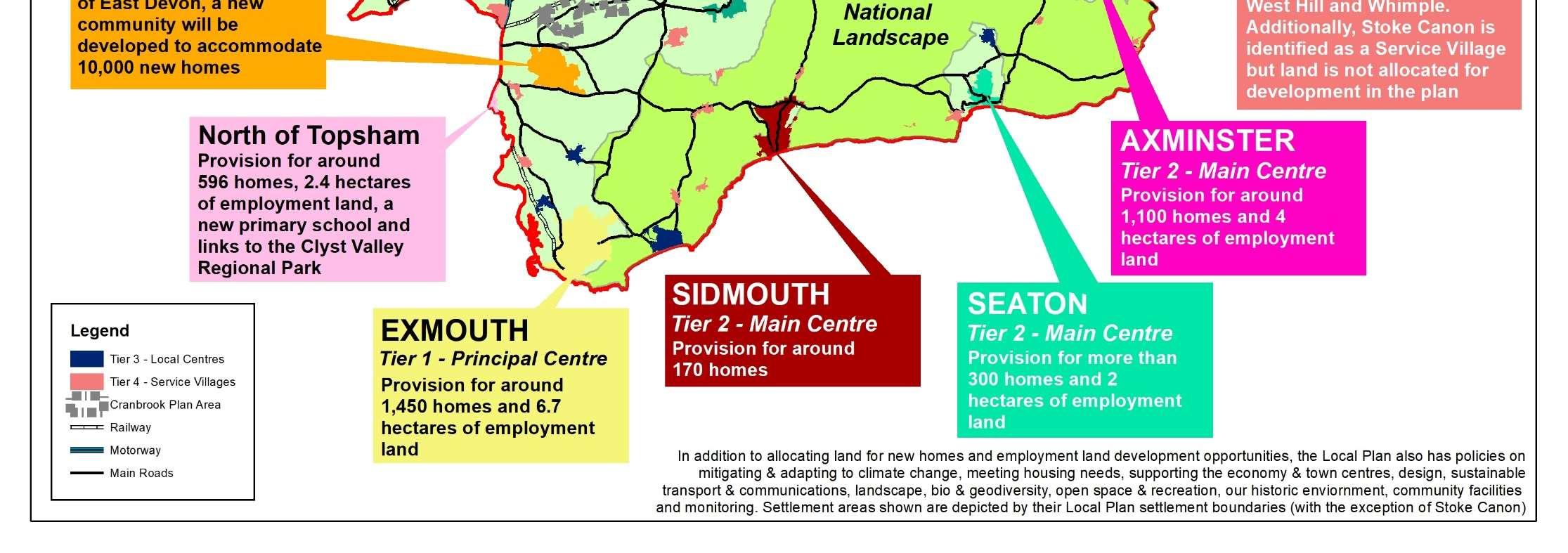 2.3. We will ensure our urban areas and towns and villages, as they grow to meet future needs, continue to be great places to live and have better access to the surrounding countryside for all. Looking beyond our boundaries we will need to maintain strong relationships with the adjacent city of Exeter and our other neighbours.