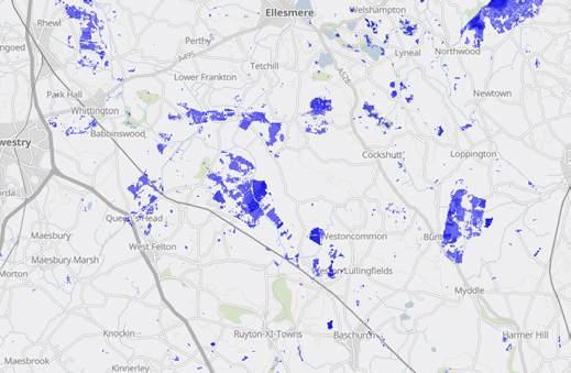 • Woodland creation - A plan for creating 28ha woodland at Uckington and Wheathill Farms has been informed by geophysical survey undertaken across the Attingham Estate to identify high, medium and low sensitivity locations for tree planting. Other factors taken into account in the location of the proposed planting scheme were existing biodiversity interest, utilities such as power lines and planned development. These woodlands will provide carbon sequestration, improve soil health and infiltration (reducing run-off), produce outstanding new habitat for wildlife, and provide a sanctuary for people to connect with nature and spend time outdoors with the commensurate health and wellbeing benefits that will deliver.