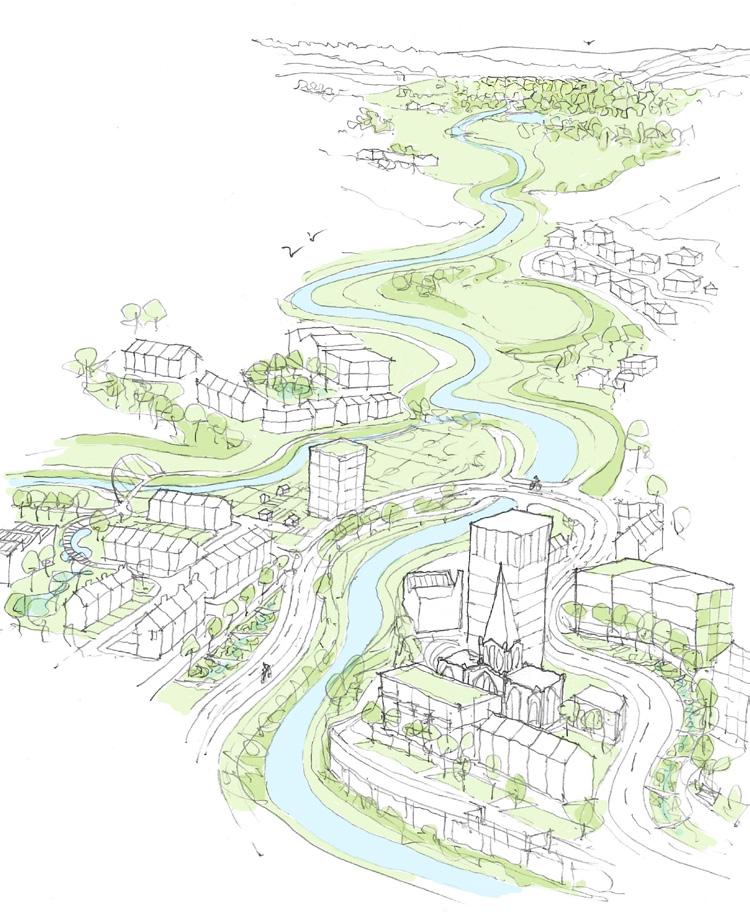 yn ystyried sut y gallai reoli dŵr orau ar raddfa dalgylchoedd. Mae'n archwilio gwahanol ffyrdd o ddod â'r prosesau naturiol a pheirianneg sensitif gorau ynghyd i wireddu ein huchelgeisiau - Hafren Uchaf fywiog, gwydn a llewyrchus, nawr ac yn y dyfodol.