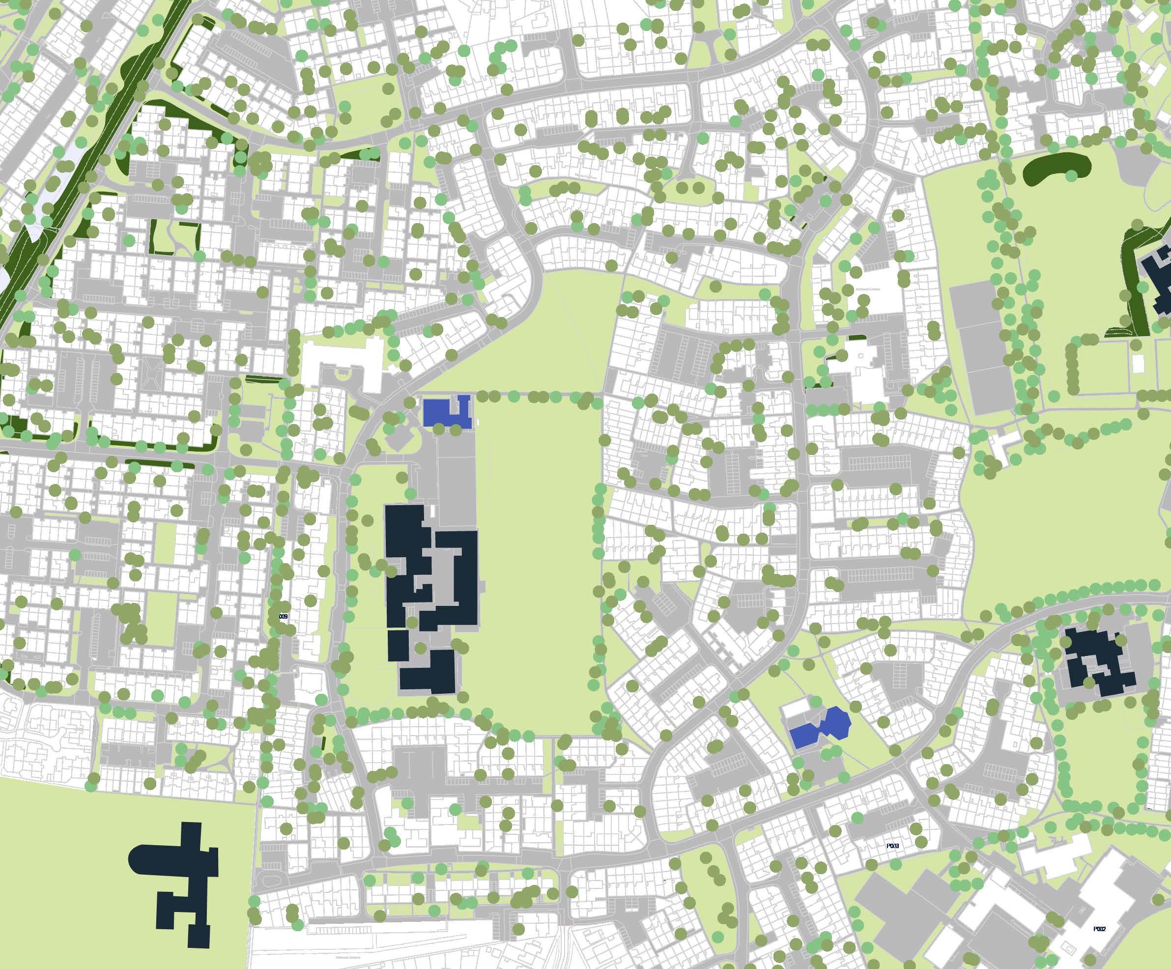 • Retaining of street layout to the east of neighbourhood