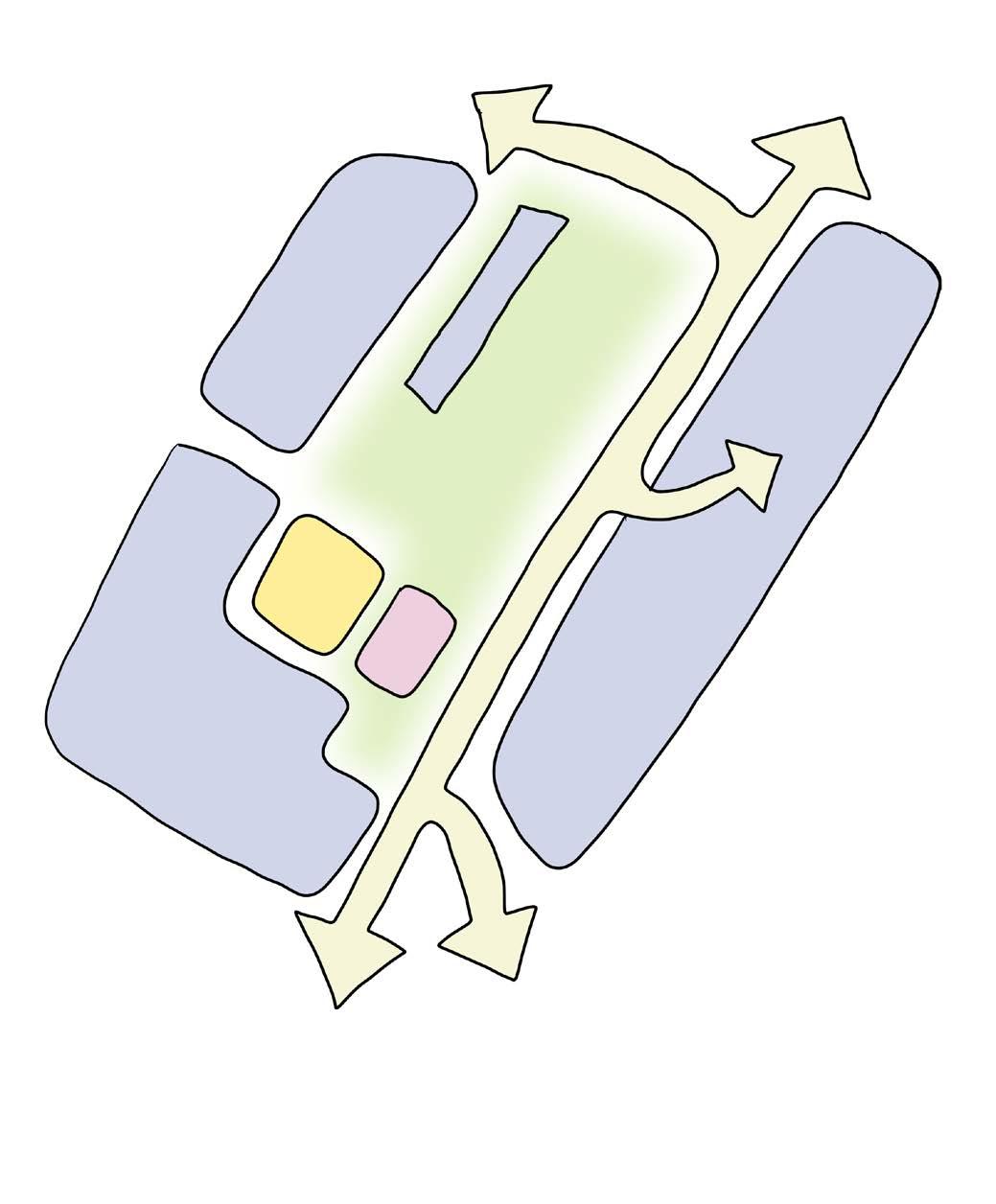 • A simplified systems of paths removing numerous alleyways to improve safety