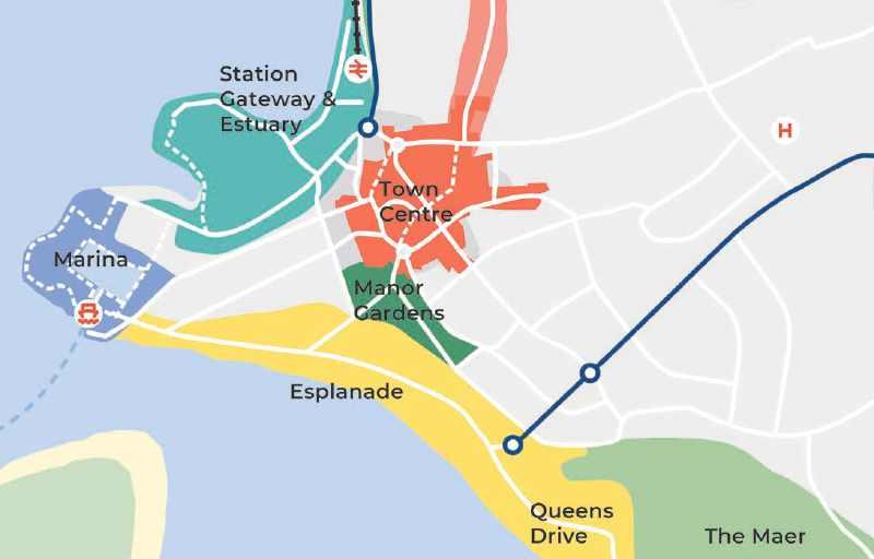 The vision for the town centre is the creation of an enhanced environment for pedestrians and cyclists and increased vibrancy through additional meanwhile uses that support new business growth. The key elements of a refreshed public realm will be the route from the station gateway to The Strand, The Strand itself as the heart of the town centre and the onward route to the seafront through Manor Gardens and across the Beacon Hill zebra crossing to Madeira Walk.