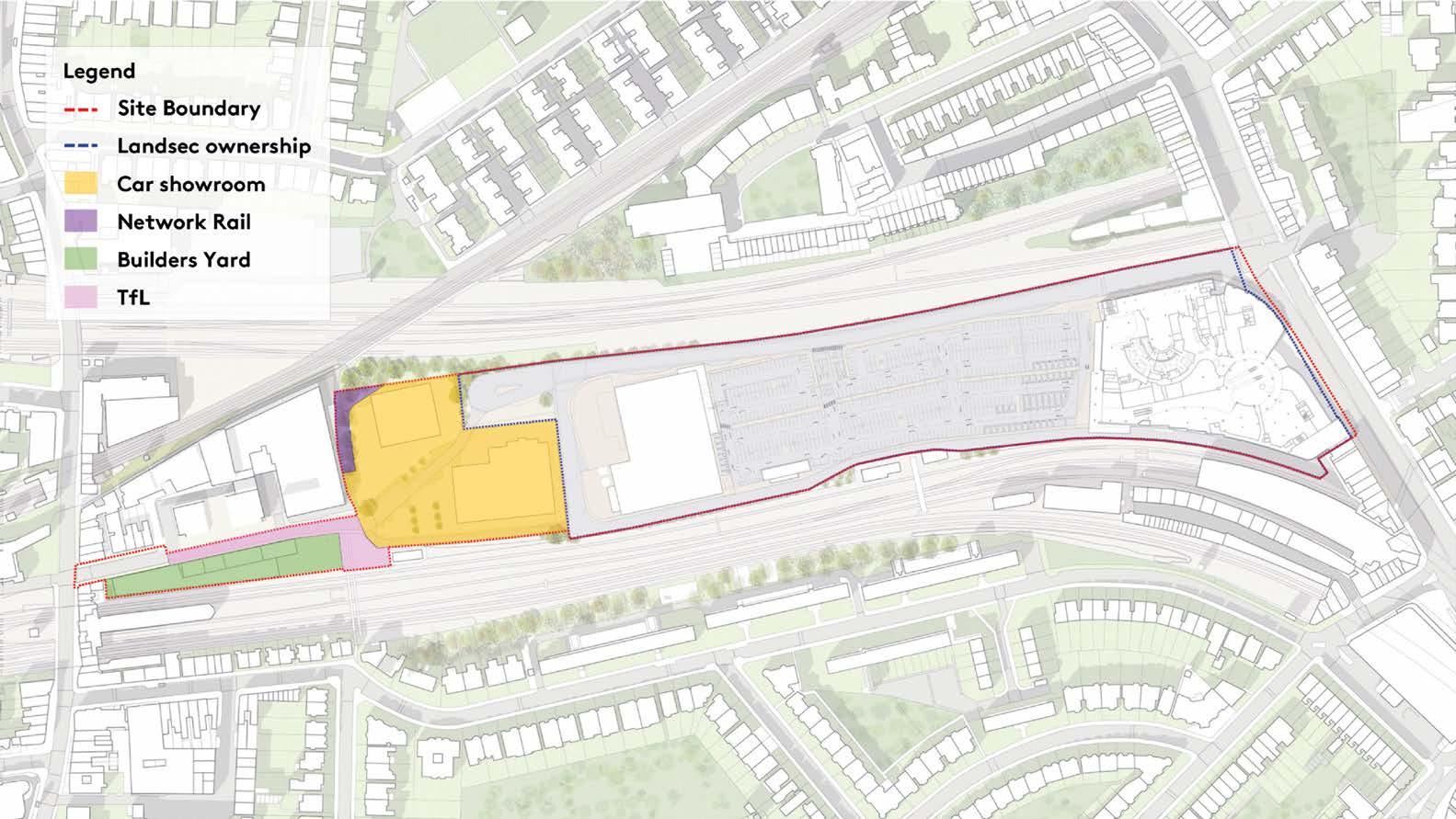 Site boundary Landsec ownership Car showroom Network Rail Builders Yard TfL
