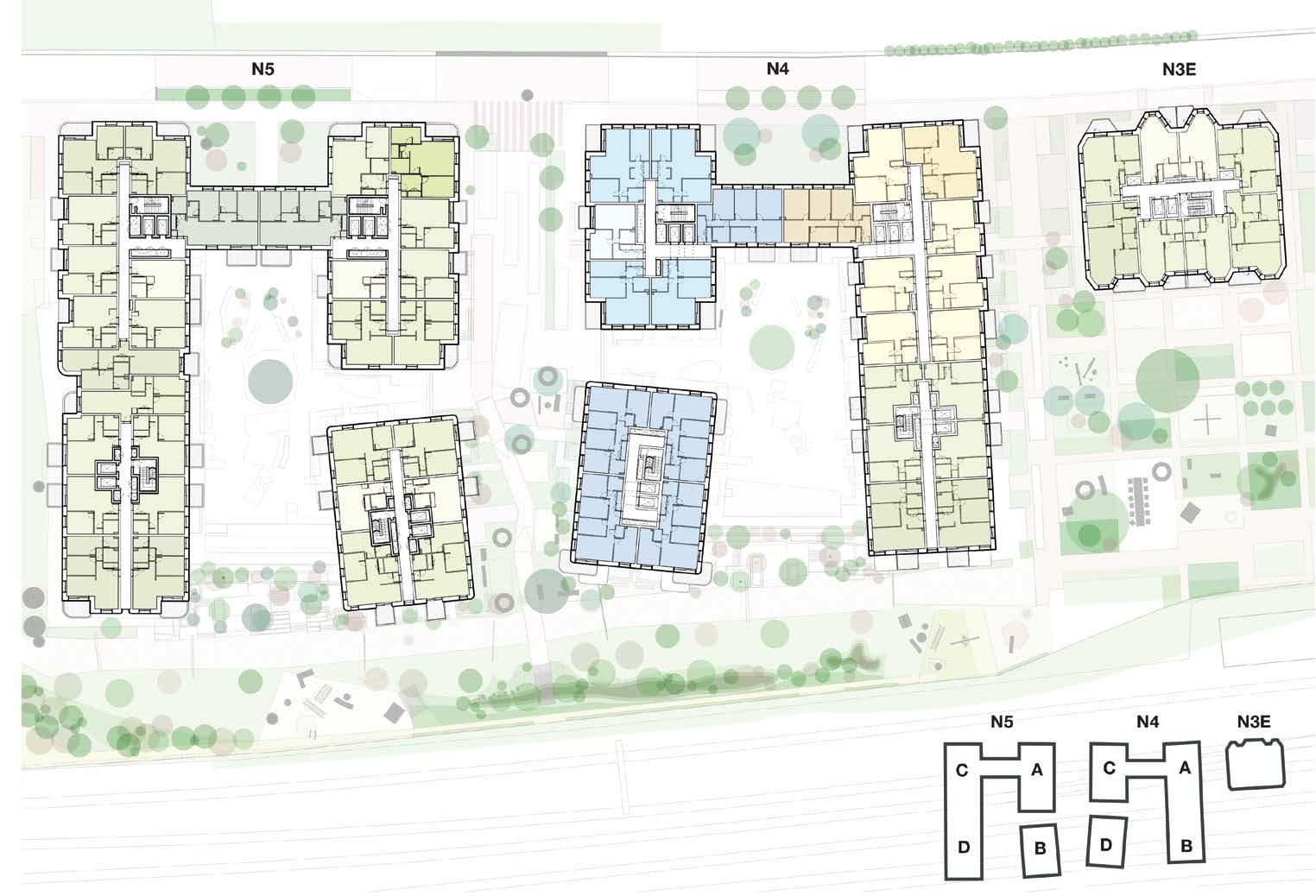 Detailed plots within the Masterplan Site 3D massing of detailed phase buildings N4 Building A 13 storeys Building B | 9 storeys Building C 14 storeys Building D 10 storeys N5 Building A 15 storeys Building B | 10 storeys Building C 14 storeys Building D 9 storeys N3 E Building A 10 storeys Courtyard buildings Pavilion buildings