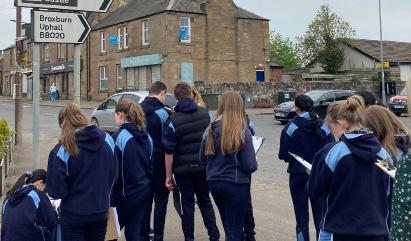 We conducted walking audits of Main Street with different groups, including the project’s steering group, members of the West Lothian Access Panel, and groups from local schools.