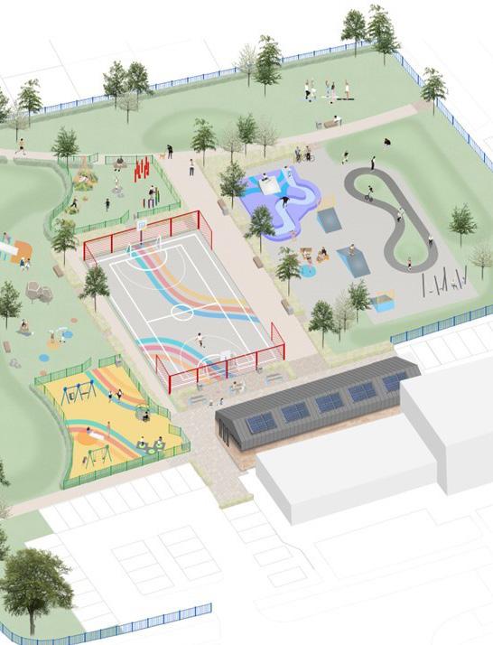 The plan is to build a modern park with different options for different ages and abilities. It will include areas where people can get active playing ball or riding bikes, scooters or skateboards. It will include sensory areas, where young people can go to chill and sensible seating and lighting for adults who just want to enjoy the space. It will be overlooked by a new purpose-built hub, designed with young people in mind.