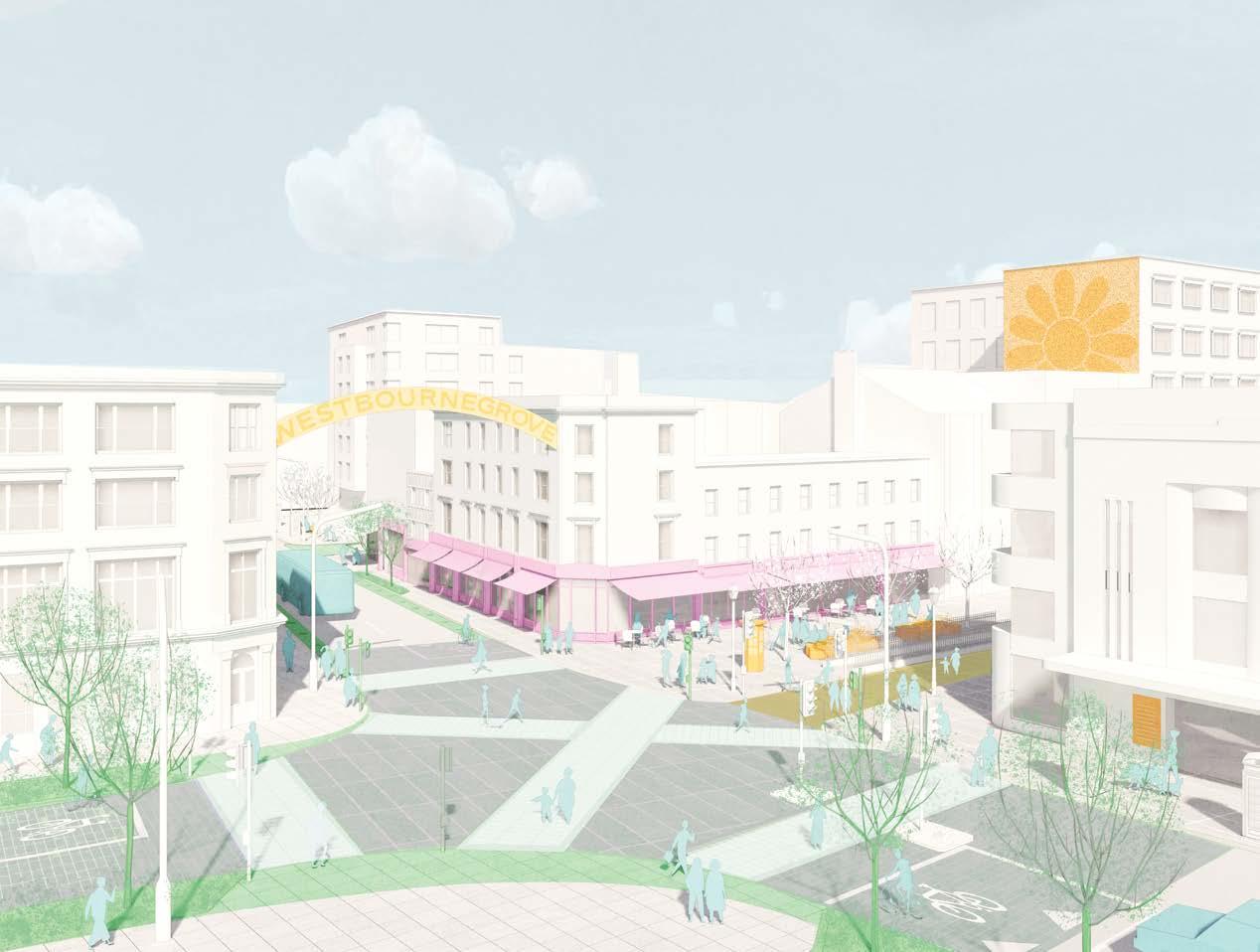 The Place Strategy for Westbourne Grove and Queensway is based on a long-term vision that is collectively shaped. It proposes key objectives and a range of projects to improve the high street along its length (streetscape) and highlight the experience of its key spaces (gateways, focal civic spaces and side streets).