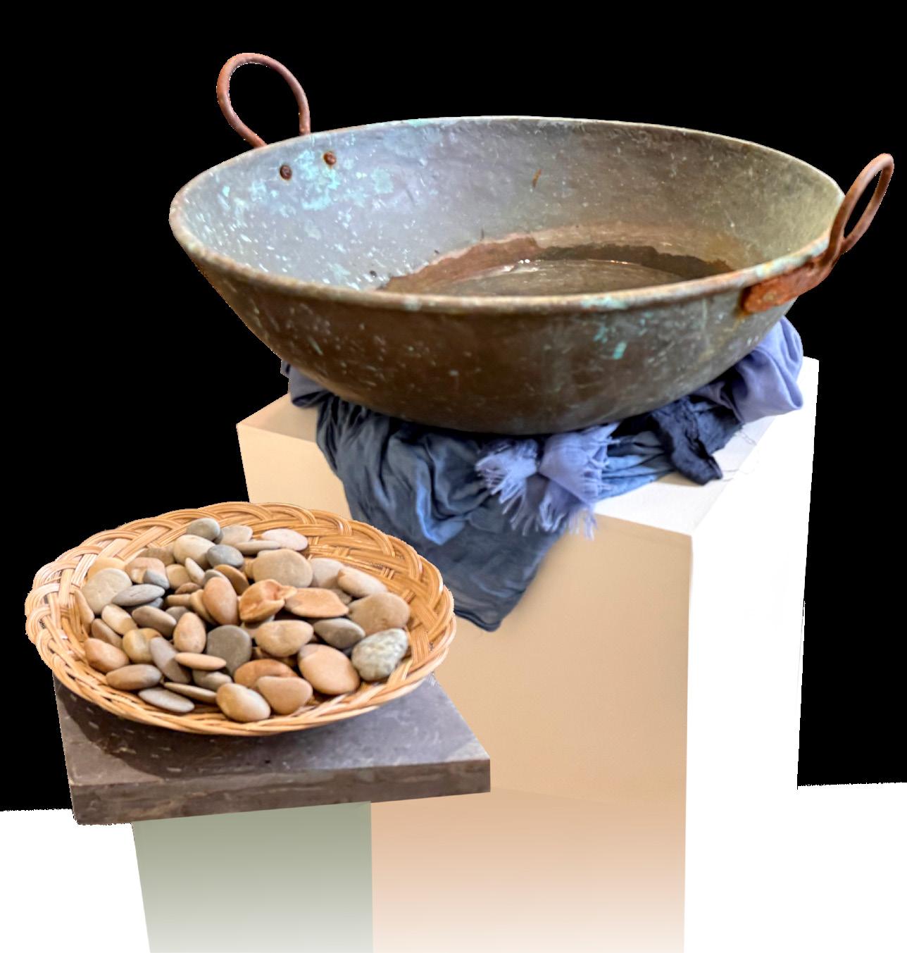 Francis invited everyone to participate in a simple stone ritual. Large bowls filled with stones were placed around the room. People could choose up to three stones, speak their sorrows into them, and place them in bowls of water—creating, as Francis described it, our "communal cup of grief."