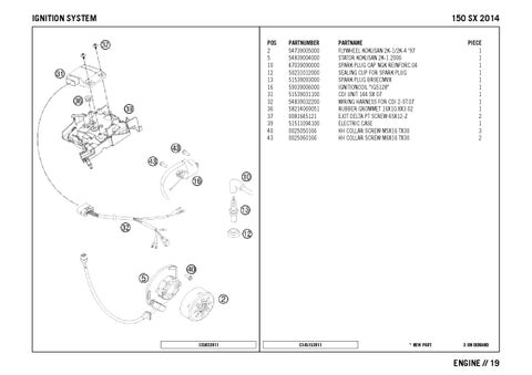 PARTNAME FLYWHEEL KOKUSAN 2K-1/2K-4 '97 STATOR KOKUSAN 2K-1 2006 SPARK PLUG CAP NGK REINFORC.04 SEALING CUP FOR SPARK PLUG SPARK PLUG BR9ECMVX IGNITIONCOIL "IG5128" CDI UNIT 144 SX 07 WIRING HARNESS FOR CDI 2-ST.07 RUBBER GROMMET 16X10,8X3 02 EJOT DELTA PT SCREW 45X12-Z ELECTRIC CASE HH COLLAR SCREW M5X16 TX30 HH COLLAR SCREW M6X16 TX30