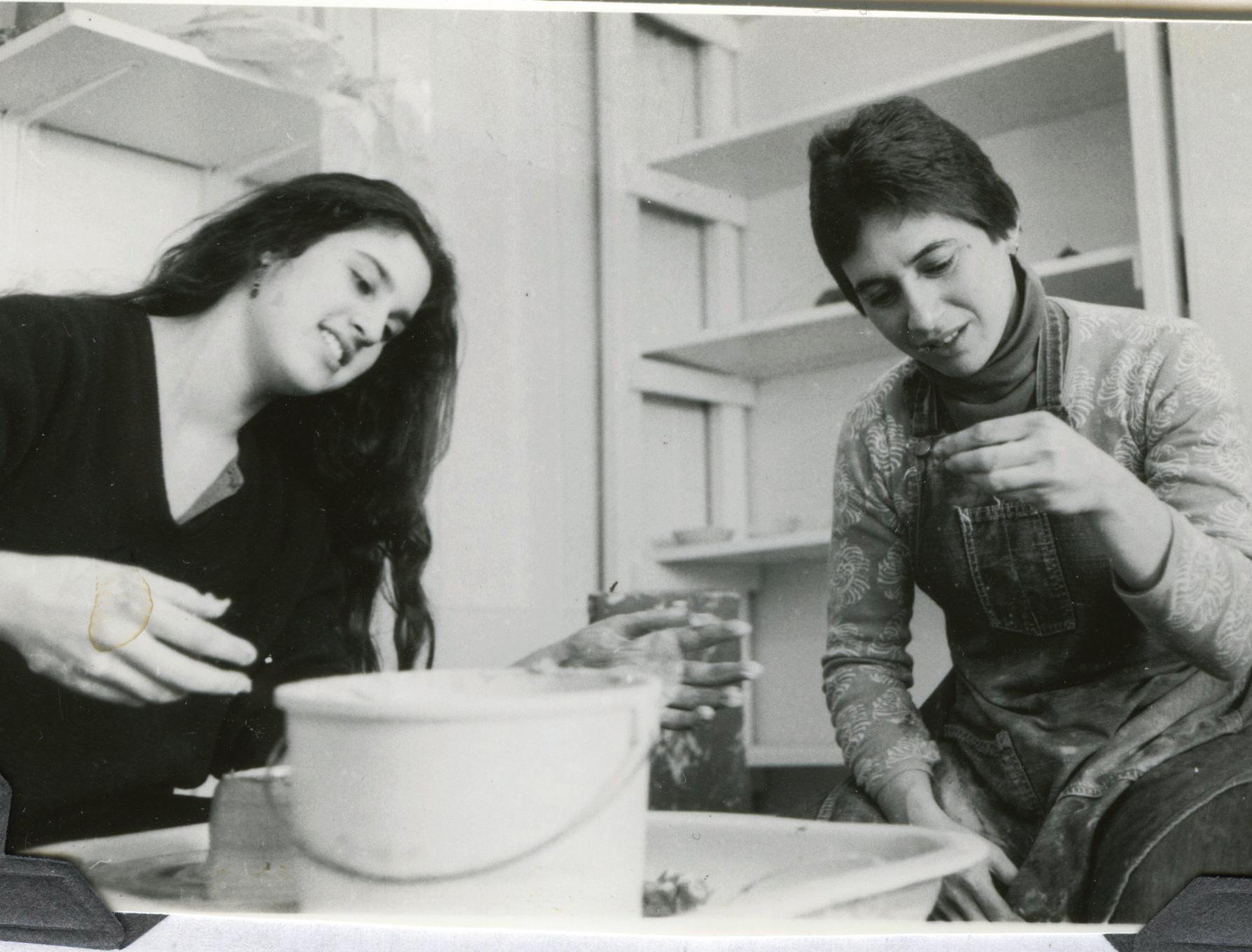 Commonwealth ceramics teachers, then and now: Jean Segaloff (left), circa the late 1980’s, and Kyla Toomey, circa not so very long ago, have overseen our ceramics studio—with warmth and a healthy splash of irreverence—as students throw, wedge, and shape clay while tapping into new depths of creativity within themselves. Jean started teaching at Commonwealth in 1979, and Kyla picked up her mantle in 2016. Step (back) into the ceramics studio of the ’80s and today on page 32.