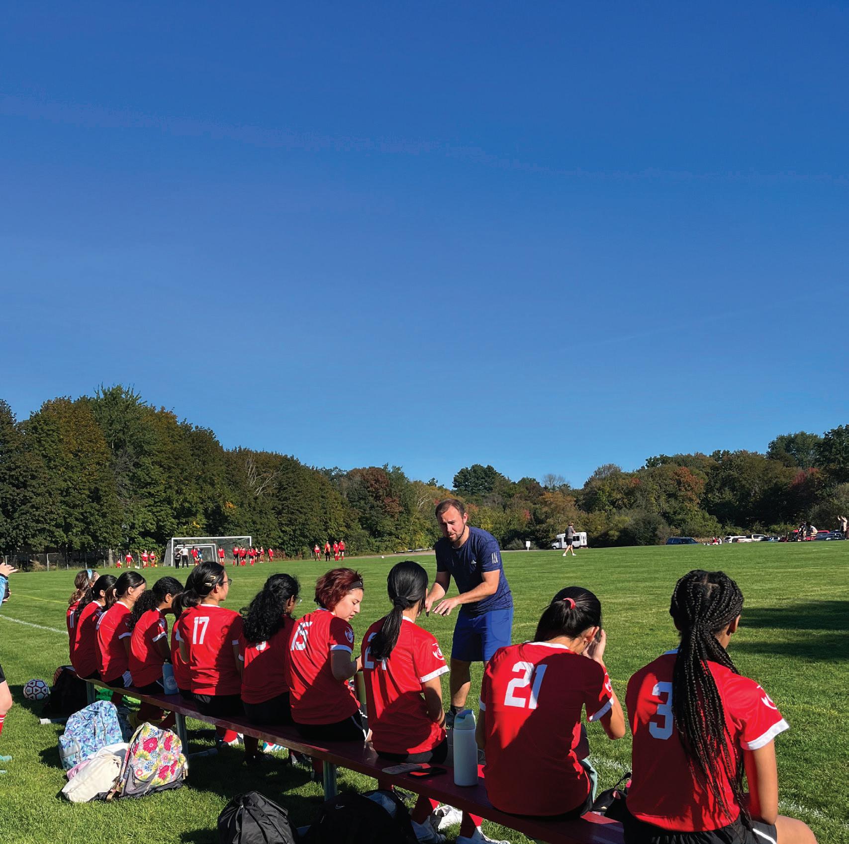 Best High School for STEM in Massachusetts Ella Sherry ’25 Lizzy Wakefield ’24 Director of Athletics Jackson Elliott ’10 coaching the champion Girls’ Soccer team