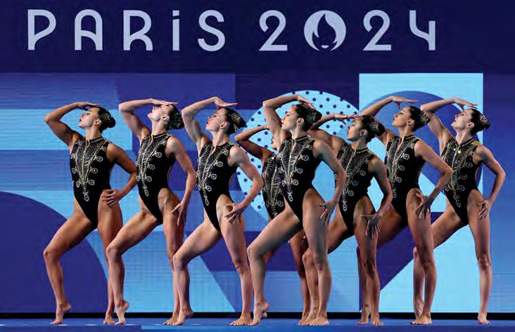 Team USA Artistic Swimming and the team CEO Adam Andrasko ’08 celebrated a silver-medal performance last summer.