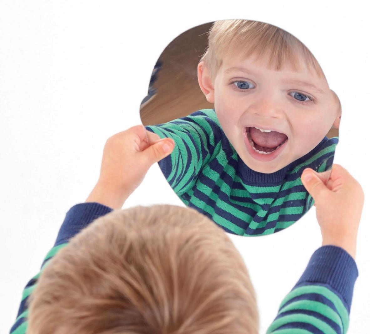 Hand-held acrylic mirror for collaborative group play and role play. Housed in a solid rubberwood outer, it is both extremely strong and easy to hold and manipulate by young children.