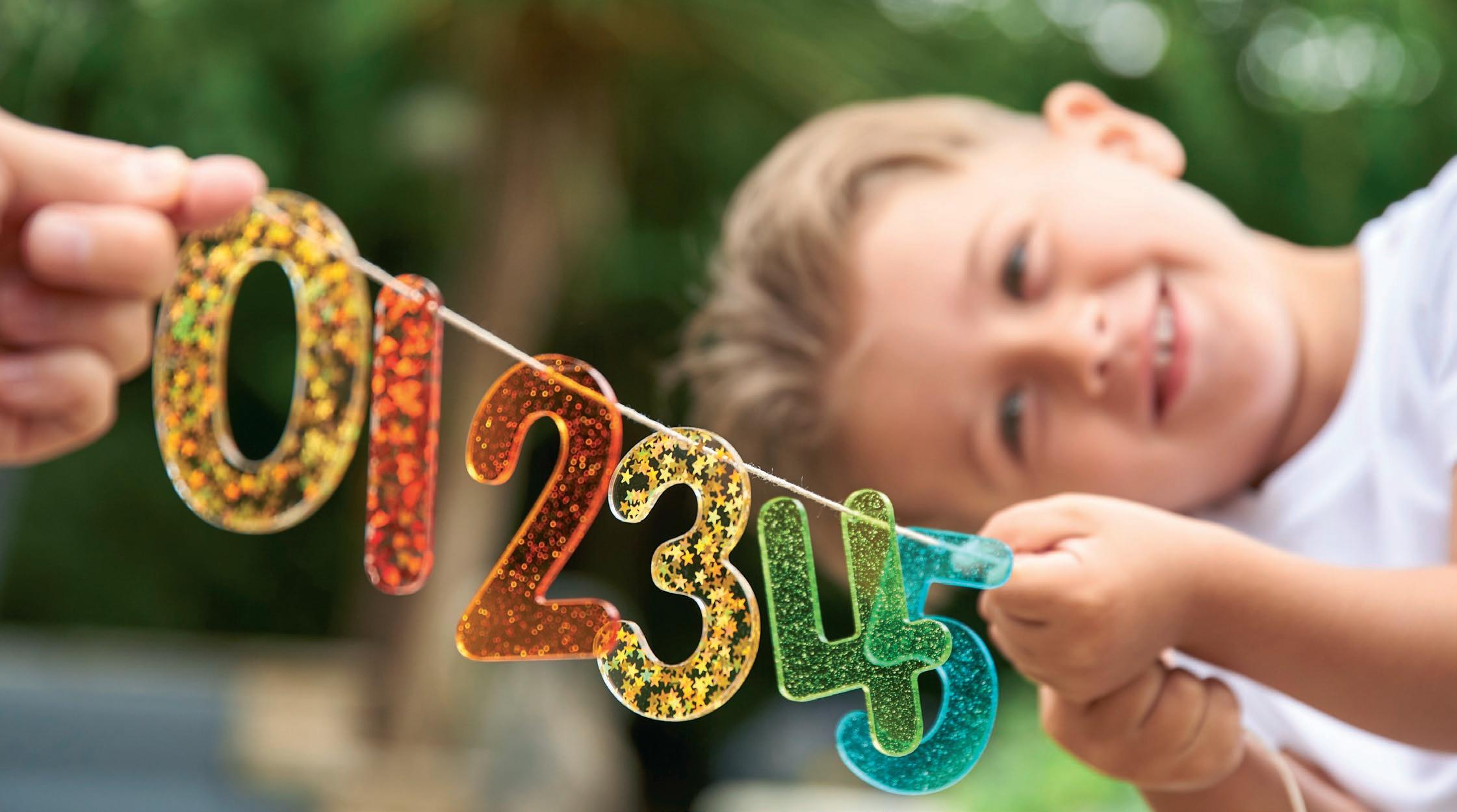 Numbers 0-9 made from colourful glittering 3mm acrylic. The set comes in 7 sparkling colours and includes two styles of the numbers 4 & 7 and an additional 1 & 0. They are ideal for use on a light panel to encourage numeral recognition. Each number has a 2.5mm hanging hole at the top balance point. Size: 70mm.
