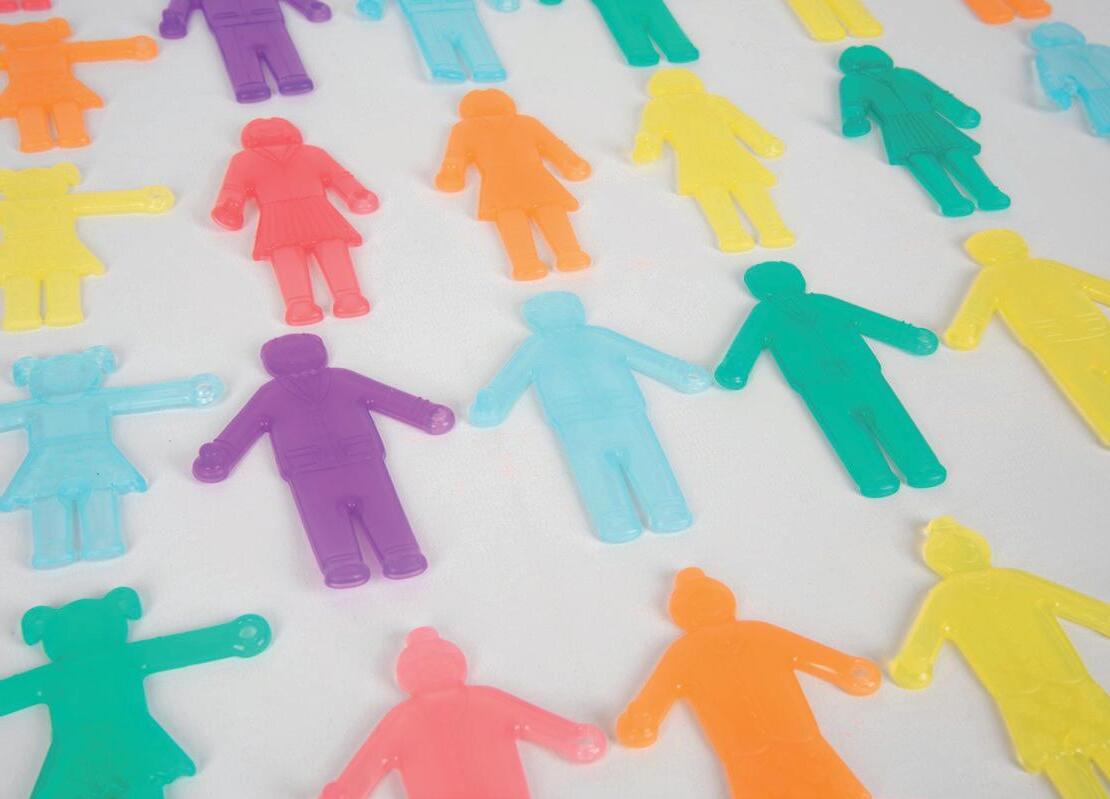 • Place the SiliShapes Linking People on a light panel and draw the children’s attention to the details of the characters. Show the children how to make rubbings of the various people to cut out and use on the light panel in their play.