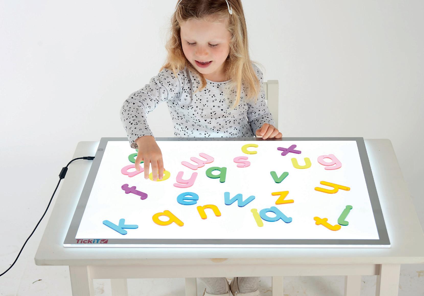 • Create sets of upper and lower case letters using coloured acetate or use the Rainbow Letters on a light panel to help children recognise the letters of the alphabet.