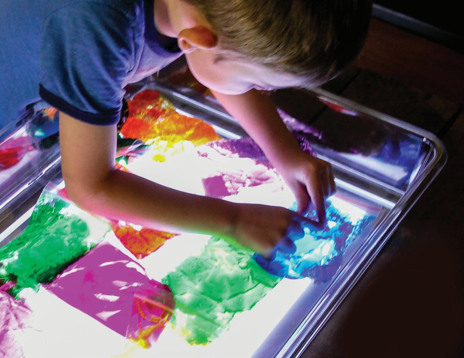 • Use a variety of resources on a light panel to provide the opportunity to develop a ‘language of colour’ with children.