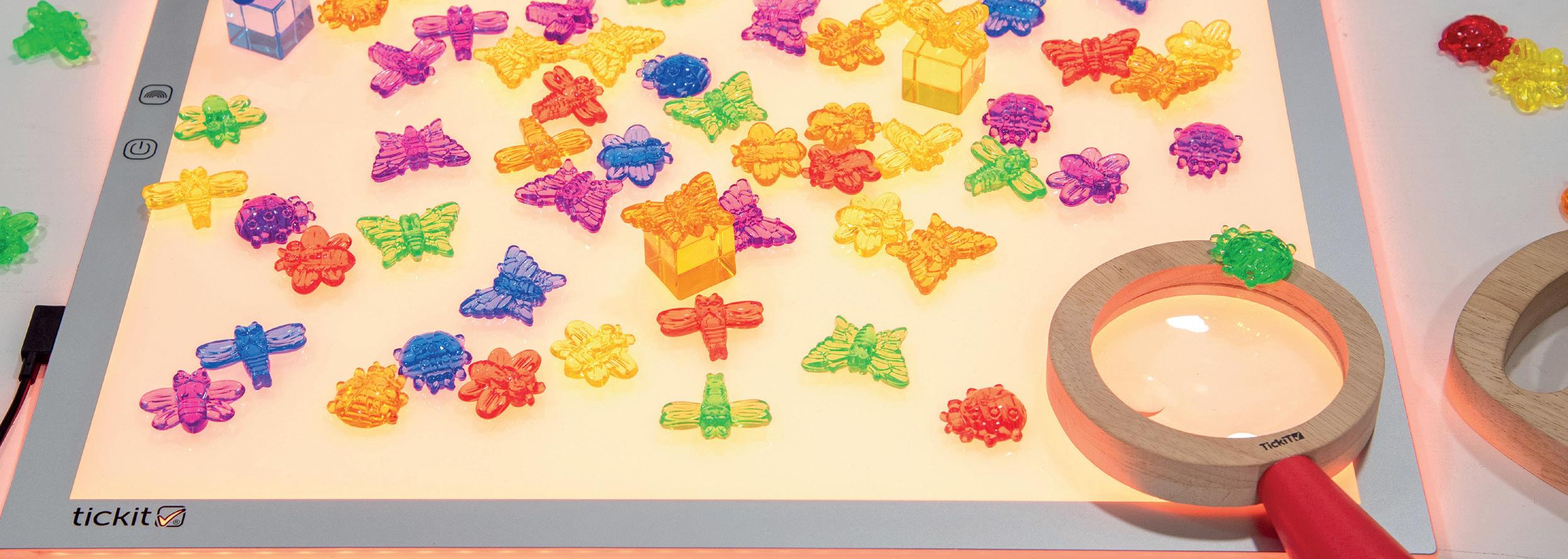 • The addition of a mirror to a light panel will help develop children’s creative thinking skills as they see the resources they are using from different angles.