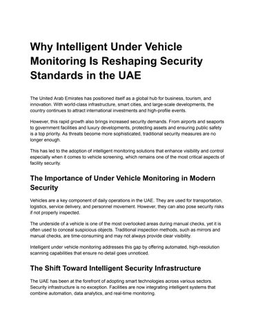 Why Intelligent Under Vehicle Monitoring Is Reshaping Security Standards in the UAE