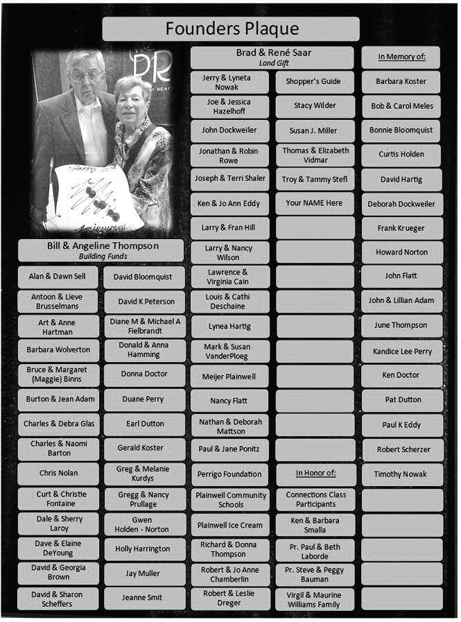 Positive C hange is important to you, and you are able, you, your family or a loved one can have a permanent place on our new Education Resource Center Founders Plaque for a donation of $1000. This offer is available until April 14, 2023. See details below and thank you sincerely for your faithful support.