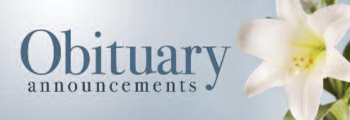 When you find yourself facing the loss of a loved one ... we can assist in making the details you face a little e a s i e r To p l a c e yo u r o b i t u a r y announcement on our community pages, simply ask the funeral home to send the details to the Community Shoppers Guide or call/email us yourself Obituar ies are approximately $75 and are included in our online edition and on our website