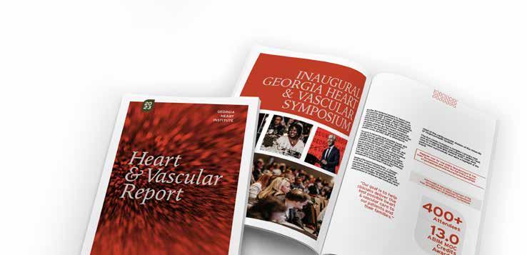During this past fiscal year, (October 2022 – September 2023), Georgia Heart Institute welcomed three non-invasive cardiologists, two vascular surgeons, one electrophysiologist, and two robotic cardiothoracic surgeon (see page 17) along with many advanced practitioners (APPs) to our centers. The constant vision for Georgia Heart Institute is to continue growing, innovating and expanding as the world around us—and our patients—also grow and evolve. We believe that to bring our best to our communities, we cannot be complacent in the care we provide. After all, the world of medicine is always dynamic, never static. The clinical and administrative teams at Georgia Heart Institute are committed to the vigorous, passionate pursuit of excellence in treating cardiovascular disease.